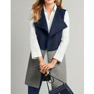 Talbots Vest Small Two-tone Navy Gray Wool Blend Flyaway Open Front Old Money