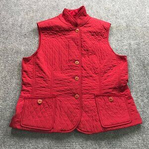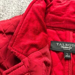 Talbots Vest Womens L Petite Quilted Red Corduroy Collar Button Close Classic