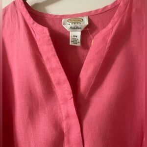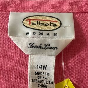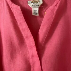 Talbots Vibrant Barbie Pink (14 W) 100% Linen, Tiny Square Hidden Buttons Shirt