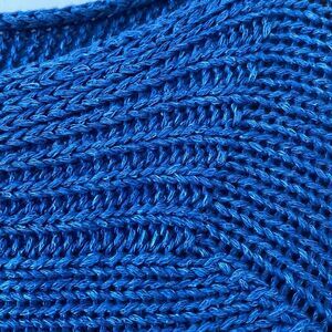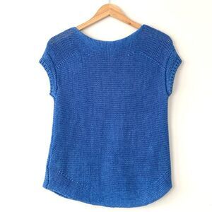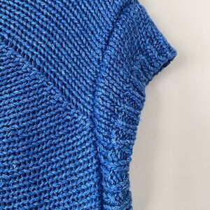 Chic linen open knit top in vibrant blue. You can feel the weight but open knit and linen so breezy and keep you cool. A lot of details in this simple knit with elegant shape.