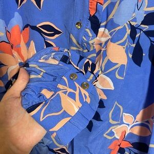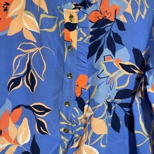 Talbots Vibrant Floral Blouse in Blue and Orange