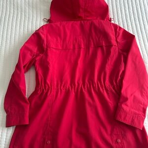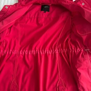 Chic red utility jacket by Talbots. Features a sleek design with practical pockets. Perfect for layering.