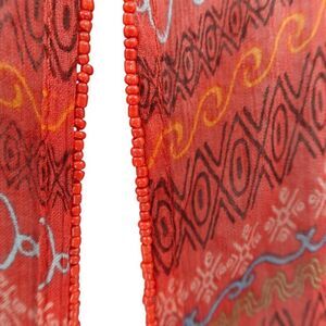 Talbots Vibrant Red Orange Geometric Beaded Scarf 4.5" x 72"