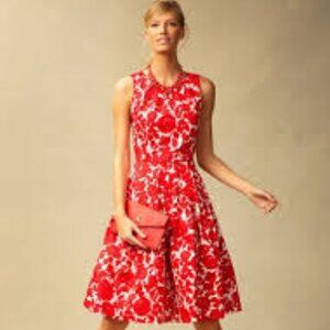Talbots Vibrant Red and White Patterned Fit and Flare Dress