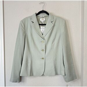 Talbots Vintage 100% Wool Button Front Blazer Lightweight NEW Green Size 16 Long