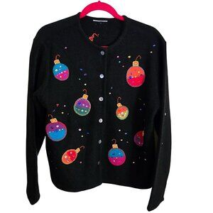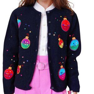 Talbots Vintage 100% Wool Unique Ornament Embroidered Cardigan Sweater Size M