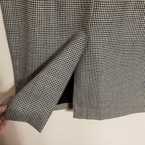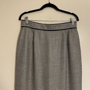 Talbots Vintage 14 Black/Ivory Metallic Gold Houndstooth Wool Midi Pencil Skirt