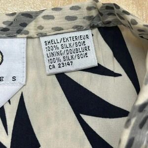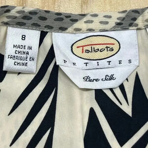 Talbots Vintage 8 Petite Skirt Midi Pure Silk Sheer Black/Ivory Palm Print Lined