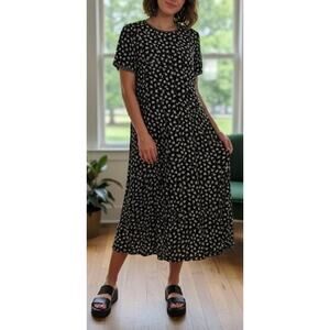 Talbot’s Vintage 90s Black Floral Dress Goth Grunge Contrast Collar Tie Waist 10