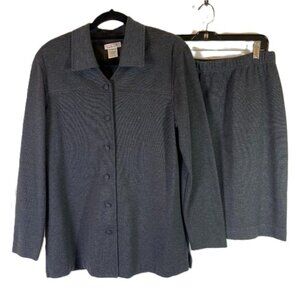 Talbots Vintage 90's Business Suit Charcoal Gray Ponte Knit Jacket Skirt Size 12