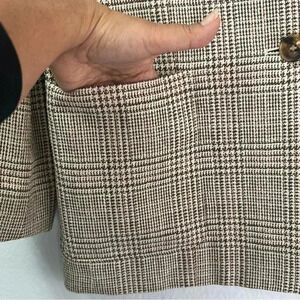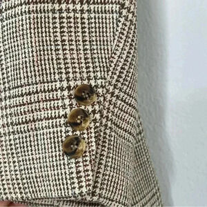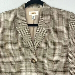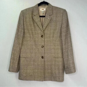 Talbots Vintage 90s Silk Linen Blend houndstooth print plaid Blazer Sz 10