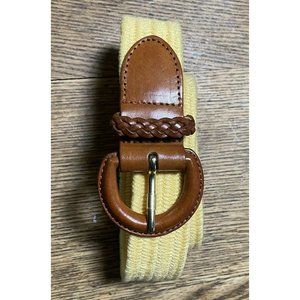 Talbots Vintage Belt Yellow Braided Woven Stretch Genuine Leather Trim Size S...1 1/4" wide....preowned condition....total length including the buckle is 36"