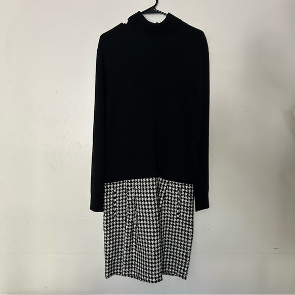 Talbots Vintage Black Houndstooth Turtleneck Sweater Dress