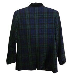 Talbots Vintage Blackwatch Plaid Wool Blend Velvet Collar Blazer Size 4