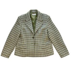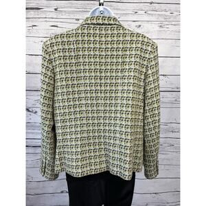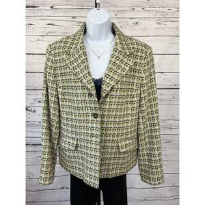 Talbots Vintage Italian Wool Blend Tweed Blazer Womens 12 Petite Check Green