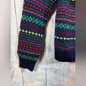 Elevate your wardrobe with this vintage Talbots knit cardigan. Crafted from a luxurious blend of lambswool and nylon, this multicolored cardigan features a crew neckline and long sleeves, making it the perfect addition to any woman's wardrobe. The knit fabric type adds texture and depth to the garment, while the vintage style adds a touch of nostalgia. Ideal for any occasion, this cardigan is sure to become a favorite.