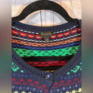 Talbots Vintage Knit Lambswool Cardigan Navy Long Sleeve