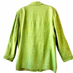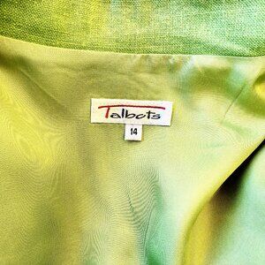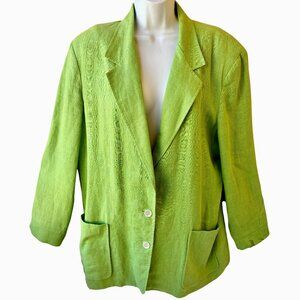 Talbots Vintage Lime Green LINEN Jacket Blazer Lined Pockets Womens size 14