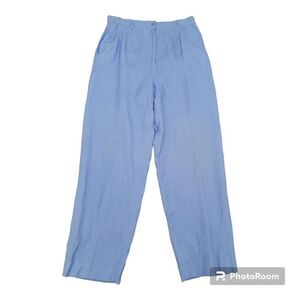Summer Talbots Vintage Linen Blend Lightweight Light Blue Pleated Casual Pants High-Rise Size 10