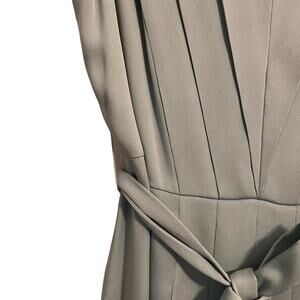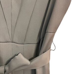 Vneck, side zipper, detached silk belt, knee length. Excellent previously owned condition - one belt loop just needs to be stitched back on if desired.