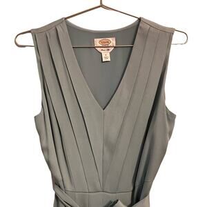 Talbots Vintage Pale Seafoam Blue Silk Pleated V Neck Belted Dress P8