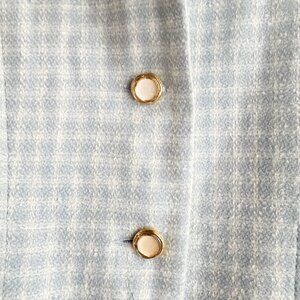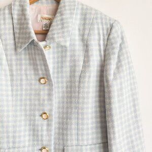 Talbots Vintage Pastel Blue White Check Plaid Print Cropped Blazer 6