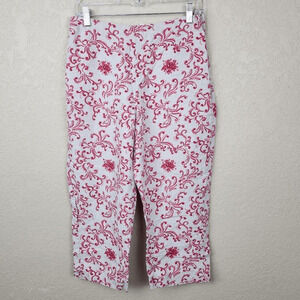 Talbots Vintage Red Scroll Print Irish Linen Casual Pants 12 PETITE (2960)
