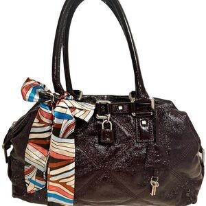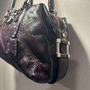 Talbots Vintage Shiny Quilted Leather Shoulder Bag Satchel Purse Dark Burgundy