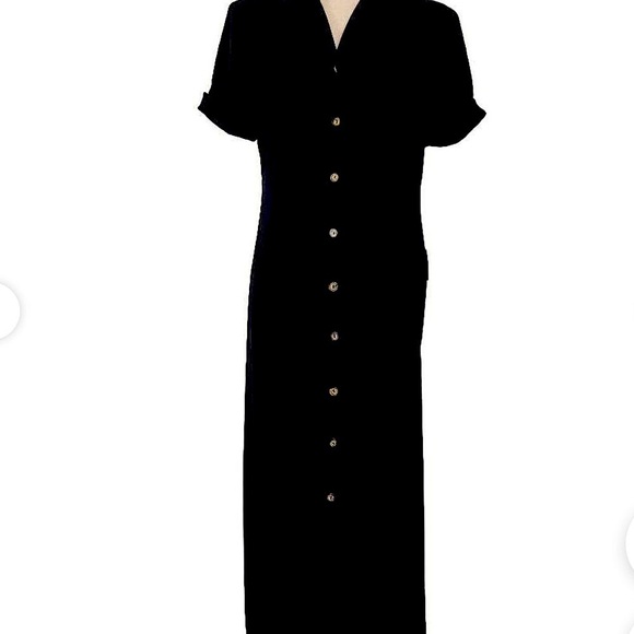 Vintage 90’s inspired Black, front button down midi dress. Gorgeous collar, short sleeves, perfect for any occasion. This sleek design offers a timeless look. Size 16