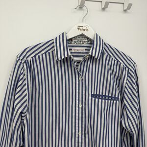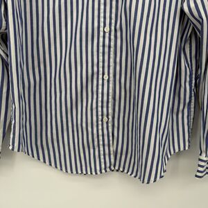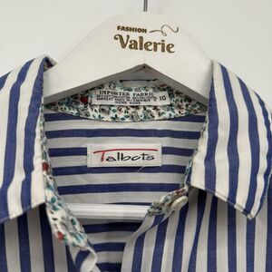 Talbots Vintage Striped Button Front Long Sleeve Top Size 10 Blue Business