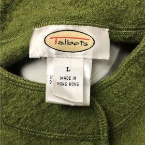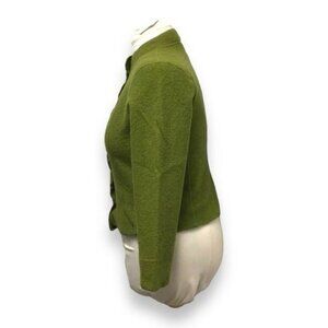 Talbots Vintage Women’s Fabric Button 100% Wool Cardigan Top, Green, size L