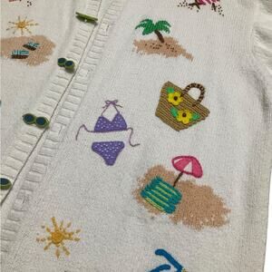 Talbots Vintage Women’s White Cardigan Beach Theme Sweater Size Small EUC