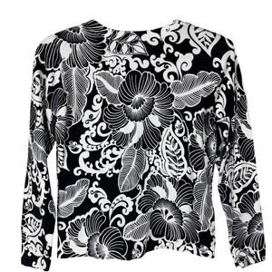 Talbots Vintage v-neck cardigan sweater Pima Cotton blend Large floral tropical