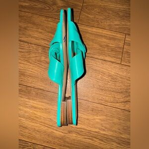 Talbots Violet Twist Nappa Slides Teal Aqua Womens Size 7 1/2 100% Leather