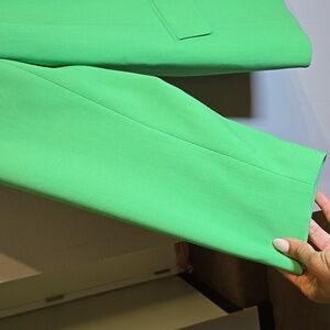 Talbots Viscose Tailored Stretch Double Breast Kelly Green Crest Button Blazer