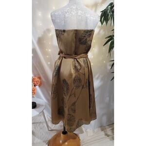 Talbots Vtg 100% Silk Leaf Tie Waist Strapless Dress Womens Size 10 Gold Beige