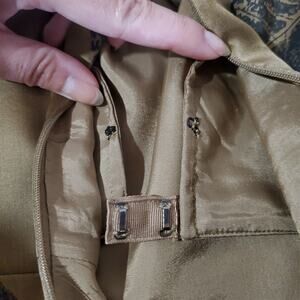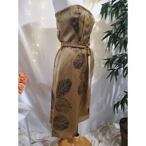 Talbots Vtg 100% Silk Leaf Tie Waist Strapless Sleeveless Dress Womens Size 10 Gold Beige