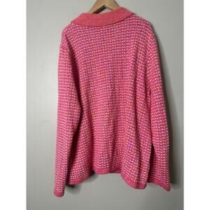 Talbots WOMENS 2X Cardigan Sweater Pink Orange Dash Stripe Collared Full Zip