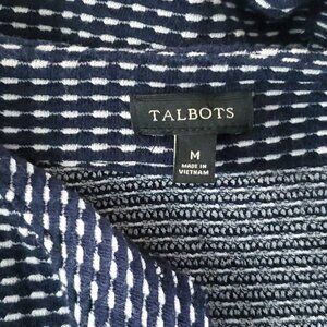Talbots Waffle Weave Knit Shirt Top Sz M Navy Blue White V Neck 3/4 Sleeve