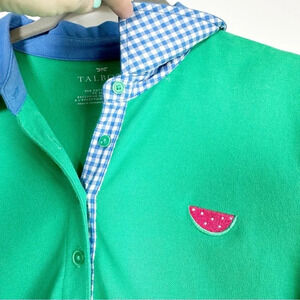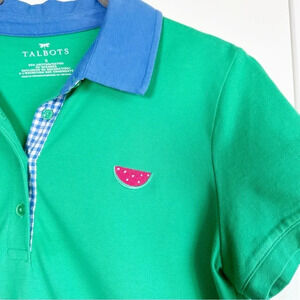 Talbots Watermelon Polo Shirt Size Small Green Embroidered Gingham Trim