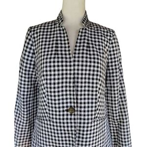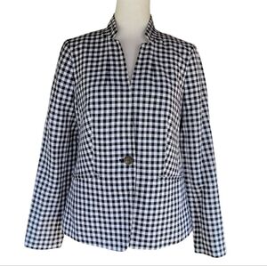 Talbots Wesley Linen Cotton Blend Notched Collar Gingham Blazer Size 2
