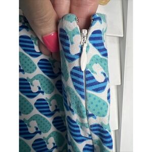The Talbots Whale Print Stretch Cotton Pencil Skirt in women's size 8 features a playful whale pattern in blue and a straight & pencil style that is perfect for various occasions like travel, weddings, parties, casual wear, workwear, and business meetings. Made from a blend of cotton and spandex, this knee-length skirt is machine washable and offers a comfortable stretch for all-day wear. The nautical theme makes it a versatile addition to any wardrobe, whether for a summer beach party or a winter business meeting. 97% cotton 3% spandex Machine washable Zips on side Waist - 15.5" Full length - 18.5" Smoke free home. Orders shipped next business day.