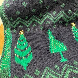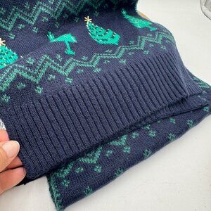 Talbots Whimsy Fair Isle Scarf blue green Trees Holiday Festive Navy Green Gold