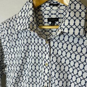 Talbots White Blue Chain Print Wrinkle Resistant LS Button Front Shirt Size 12