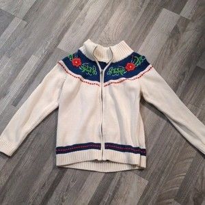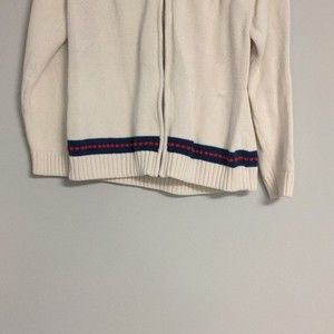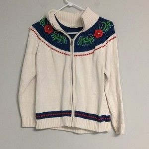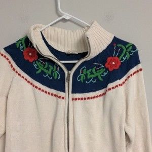 Talbots White Blue Floral Embroidered Zip Up Long Sleeve Sweater
