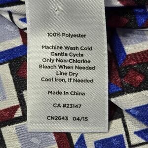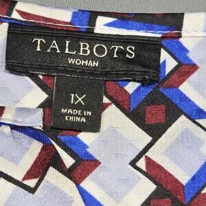 Talbots White Blue Shirt Blouse Geometric Print Long Sleeve Button Women Plus 1X