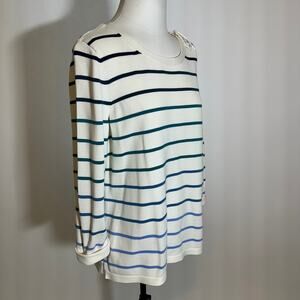 Talbots White Blue Striped Knit 3/4 Sleeve Pullover Sweater Womens Size Large L