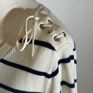 Talbots White Blue Striped Knit 3/4 Sleeve Pullover Sweater