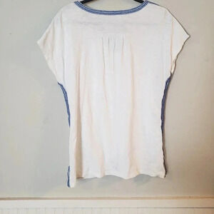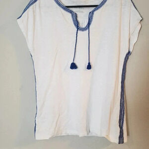 One of the tassel strings has pieces coimng apart (see pics) & one small brown tain on the upper left had side of upper breast (hard to see in pics)