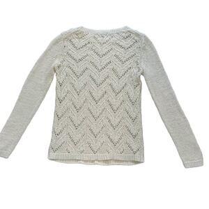 Talbots White Cotton Blend Long Sleeve Crew Neck Chevron Pattern Open Knit Sweater
